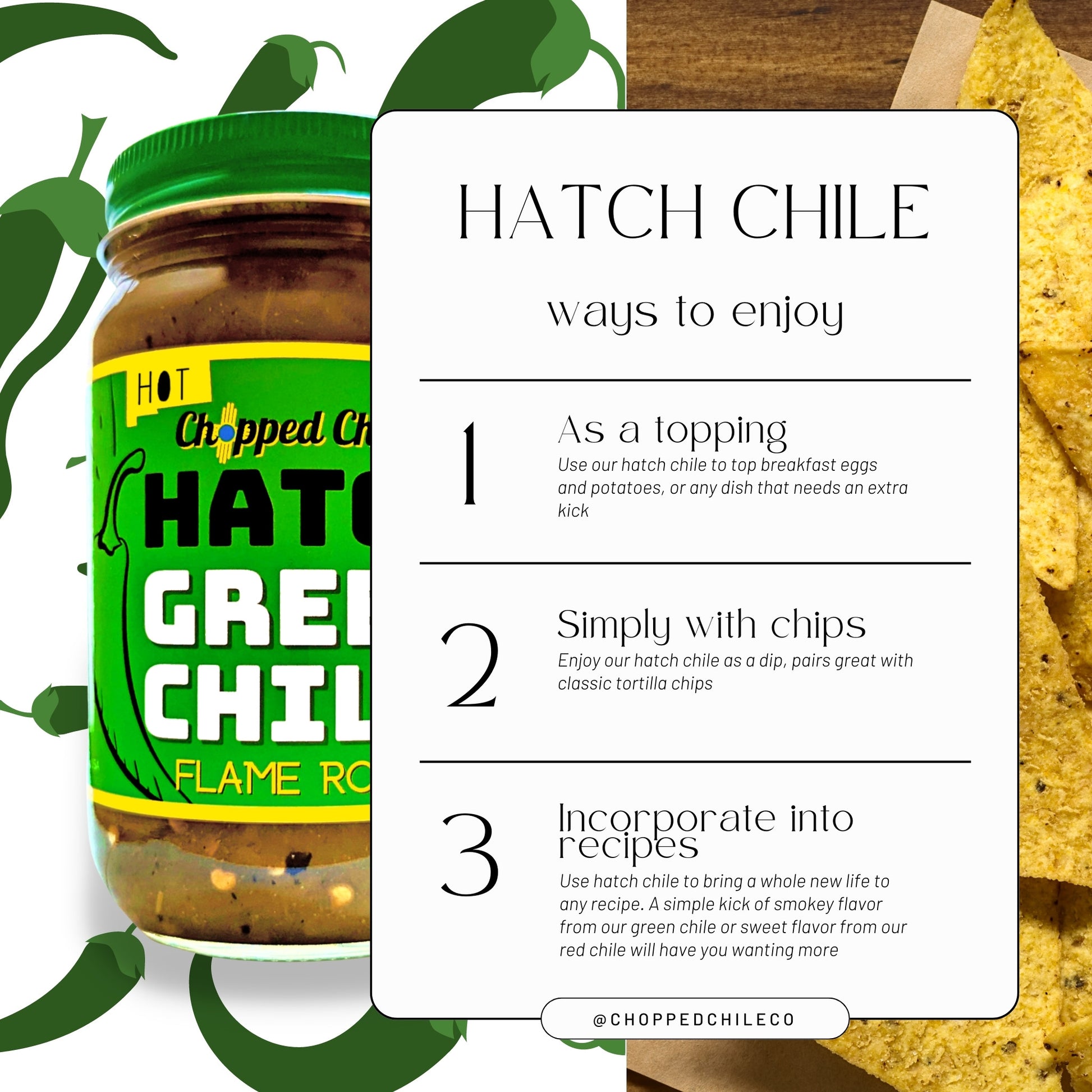 Transform your cooking with Chopped Chile Co. Hatch Green Chile – the versatile ingredient that adds a smoky, spicy flavor to any dish! Hand-picked at peak freshness from the fertile soil of Hatch, New Mexico, our proprietary blend of chiles from around the Hatch Valley ensures a unique and superior taste.